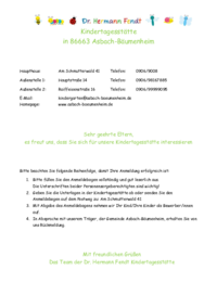 Anmeldebögen Dr. Hermann Fendt Kindertagesstätte