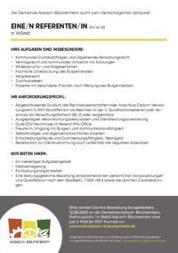 Die Gemeinde Asbach-Bäumenheim sucht ab 01.01.2024 in Vollzeit EINE/N MITARBEITER/IN FÜR DAS VORZIMMER DES ERSTEN BÜRGERMEISTERS (m/w/d) Ihre Aufgaben sind insbesondere: Sekretariat/Assistenz für…